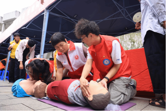 志愿者们有的在人体模型前一次次循环往复急救操作,有的在视力检测展位一遍遍的指导观察,有的在脊柱侧弯筛查展位依托先进设备,帮助群众了解脊柱生长现状;医护志愿者们则结合专业知识,通过测量、听诊、问询等手段,为群众带去健康建议。服务现场吸引大批群众参与,在志愿者、医护与群众互动的热烈氛围中,展现着弘扬雷锋精神,热心帮助他人的真谛。