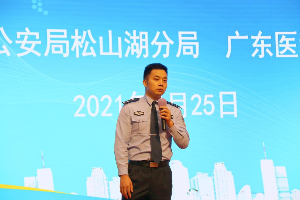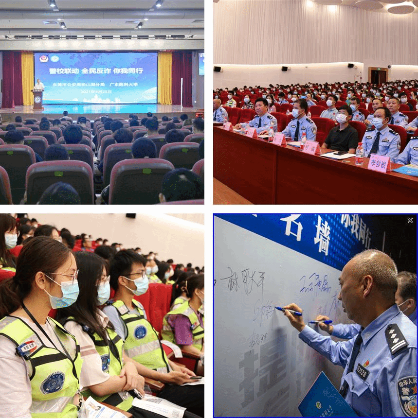 东莞市松山湖党工委委员、公安分局局长韩志江在讲话中表示,要强化警校联动,协力同心,共同营造浓厚的防诈氛围,增强师生的反诈意识,共同筑牢高校防范电信网络诈骗的坚固“护城墙”。松山湖园区公安机关要发挥主力军作用,辖区派出所、警务室要发挥好对接落实高校反诈的重要桥梁纽带作用,校方要将反诈工作与学校中心工作同部署同落实,充分调动各职能部门和各类平台资源,广泛开展校内反诈宣传教育工作,推动强效落实。广大师生要从自己做起,积极营造人人识诈、人人反诈的浓厚氛围,按照警校联动的工作部署,通过各种方式提高自身防范意识和能力,当代大学生要主动担当,积极参与校园反诈宣传。