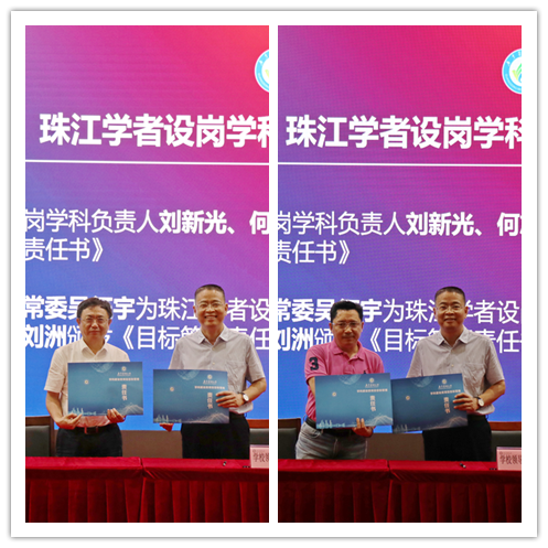 会上,学校领导与重大项目、重点项目、珠江学者设岗学科建设项目负责人分别签授学科建设类项目目标管理责任书。项目负责人代表刘华锋、倪进东作了表态发言。