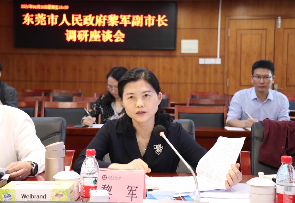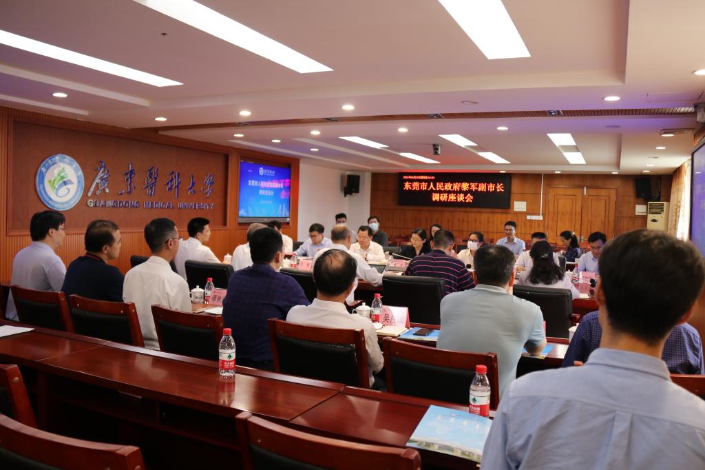 东莞市政府副秘书长赖少瑜、市人社局局长陈智武、市教育局副局长邓柏松、市卫健局副局长袁伟芬、市科技局党组成员廖俊旭和松山湖党工委委员卢钢等参加调研,校党政领导罗辉、邝卫红、曾志嵘、谭平,党委办公室、党委宣传部、人事处、科技处、医院管理处、研究生院、附属东莞第一医院等部门和单位负责人一起参加了调研座谈会。(文、图、编/裴金涛 审/冯锦山)