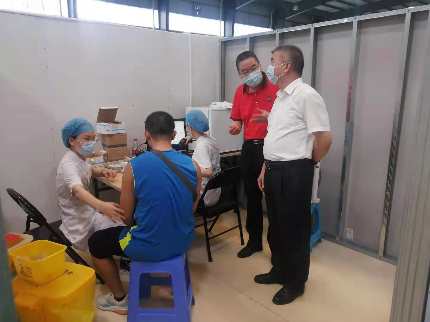 学校党委副书记罗辉于上午十点参加湛江市卫生局疫苗接种工作会议,十一点半回到学校便即刻赶到接种现场了解师生疫苗接种情况。