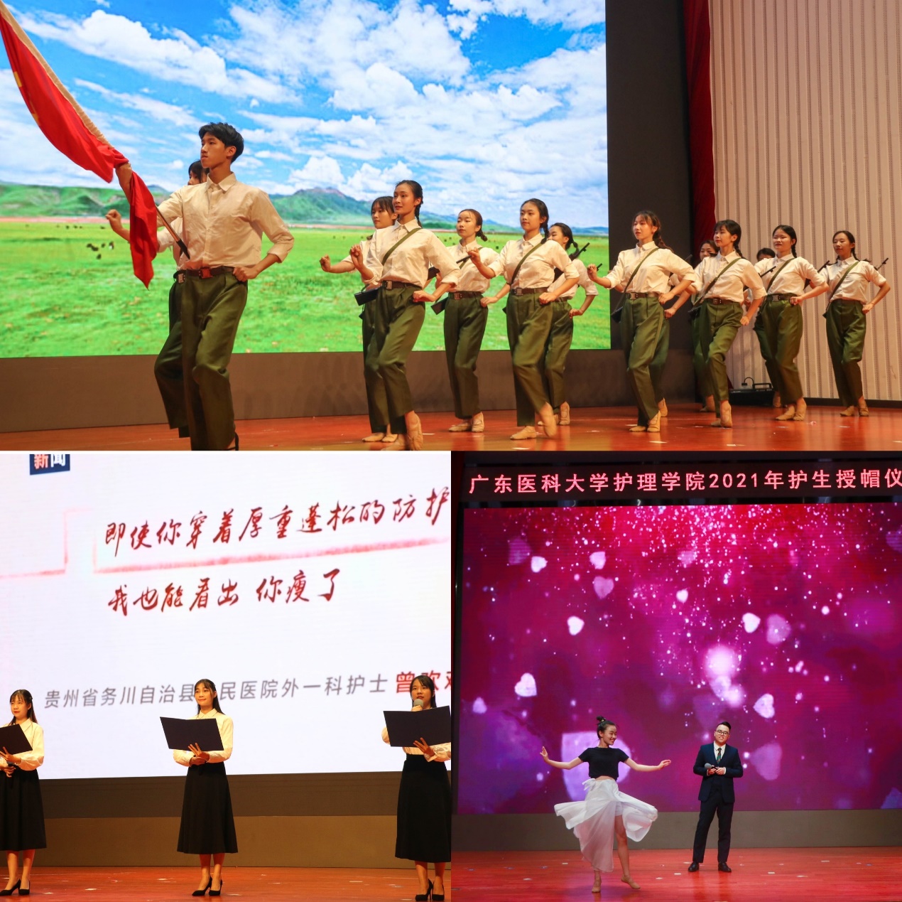 活动现场还表演了舞蹈《芳华》、诗歌朗诵《致敬白衣天使》、歌伴舞《令世界变得温暖》等精彩节目。