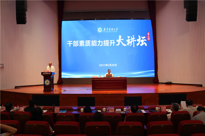 学校全体校领导、党委委员、纪委委员,党委理论学习中心组成员,全体中层干部,七八九级职员和全体辅导员参加报告会,报告会由学校党委书记、校长卢景辉主持。(文、图、编/王丽君 审/冯锦山)