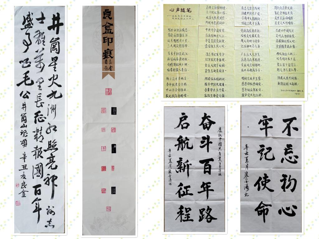 有的通过书法作品回顾了中国共产党建党百年历史中的光辉事件以及为国为民的宗旨,更令人感动的是新葡萄70届毕业生、今年73岁的校友郑忠东亲自书写了自己的原创作品,向党的百年华诞及母校校庆献礼。