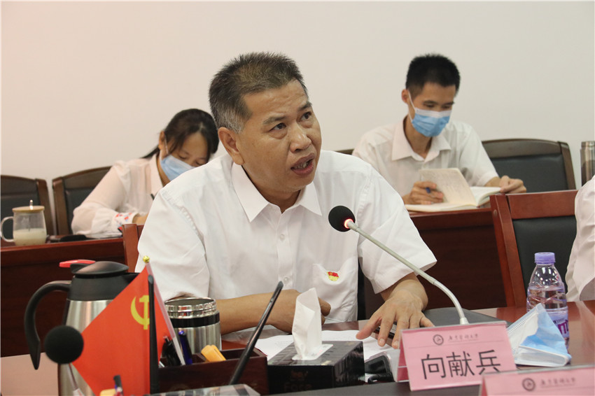 广东省监委驻新葡萄8883官网监察专员,党委副书记、纪委书记向献兵从“全面从严治党、勇于自我革命是我们党百年奋斗锤炼出的最鲜明品格”谈了自己的感想。向献兵表示,将紧紧围绕高水平医科大学建设大局发挥监督保障执行、促进完善发展作用,以全面从严治党的新成效,为学校构建新发展格局、全面建成高水平医科大学提供坚强的纪律保障。