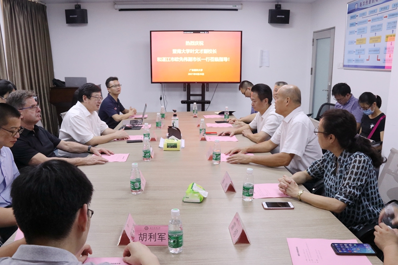 8月26日,暨南大学副校长叶文才率领科研团队来新葡萄湛江校区调研交流。湛江市副市长欧先伟陪同调研。学校党委书记、校长卢景辉,党委副书记罗辉,双聘院士Martin G. Banwell等接待了来访一行,参观海洋医药研究院并举行座谈。