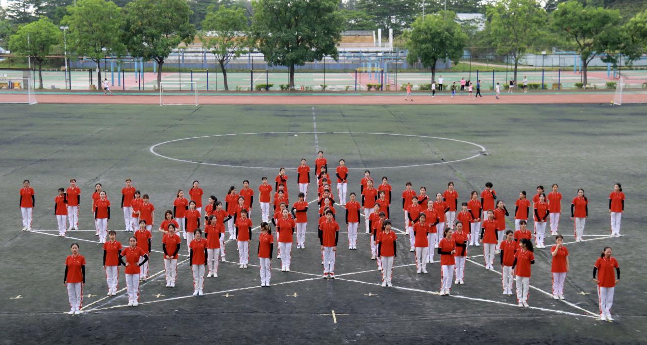 骄人的成绩来之不易。由于百名参演者来自不同的学院、班级或专业,学生训练时间难以统一,加之学校教学场地有限,要把这么多学生都集中起来一起练习非常困难,但老师和学生们努力克服困难,想方设法集合训练,大多数训练时间是牺牲个人休息时间,用近三个月的午休和周末进行排练。到了展演时间,由于比赛人数众多、学生们上课时间相互冲突,所以全体人员难以凑齐,最后决定把拍摄展演时间定为当天中午12:30进行拍摄。当时气温达到35度,但学生们不怕苦不怕累,顶着烈日,用最佳状态完成了此次展演,充分地体现了勇往直前,无所畏惧的体育精神。