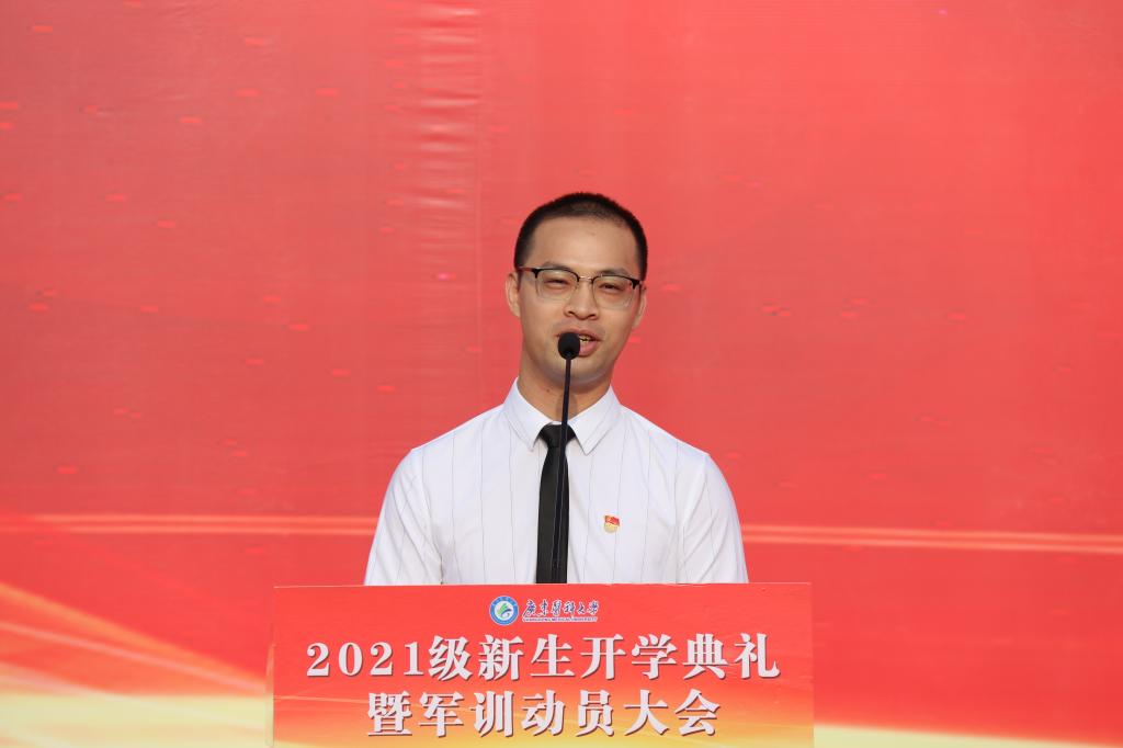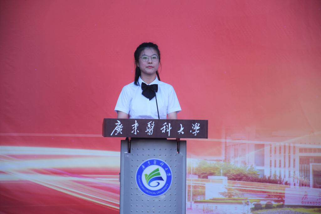 公共卫生学院张华仕同学作为研究生代表发言,作为新血液、新力量,加入广东医的大家庭,就意味着肩负起守护人民生命健康的伟大使命,承担起更大的时代和社会责任。勉励大家一起,踏着坚定的步伐,趁着时代的春风乘风破浪、披荆斩棘,在这里成就更好的自己。