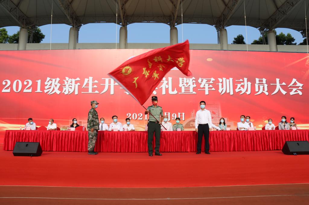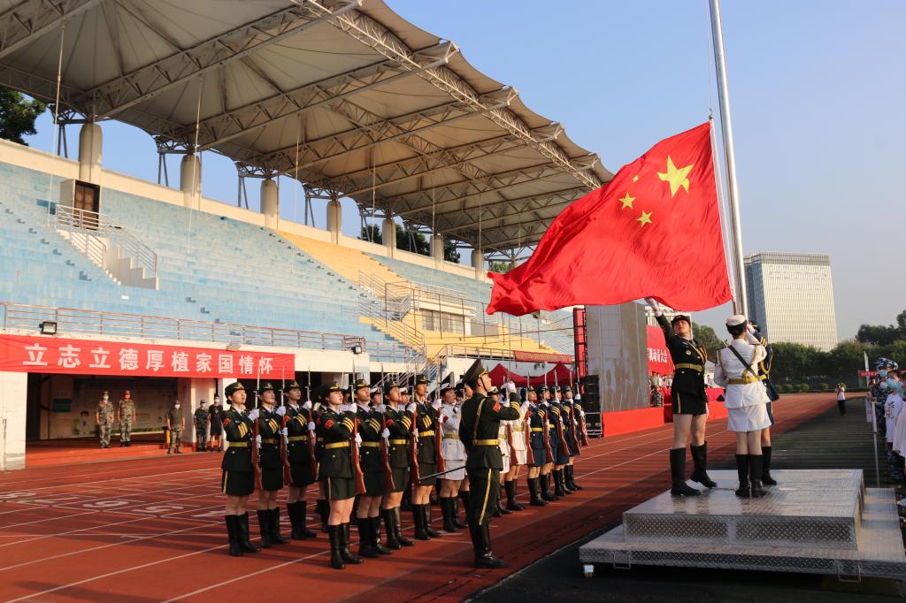 新生开学典礼暨军训动员大会上还举行了升旗仪式,对新生厚植家国情怀起到了极大的教育意义。(文/王丽君 图/吴志华 李志滨 梁茵 王博然 李睿威 裴金涛 江静妮 黎啟珑 吴梓杭 王丽君 编/王丽君 审/冯锦山 )