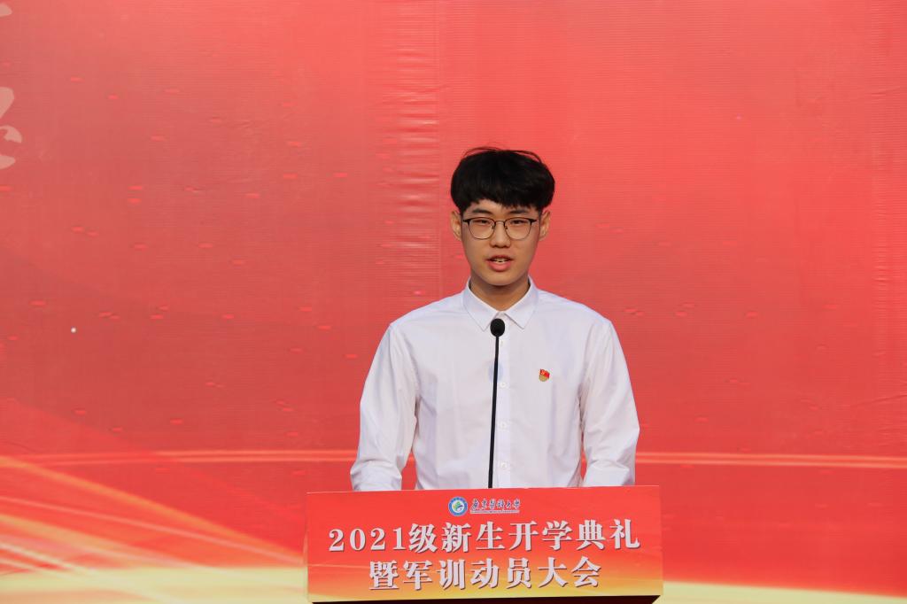 第一临床医学院卢怡宁作为新生代表发言,他表示,深夜集结、凌晨出征的师兄师姐让我看到了当代青年的责任与担当;博士、教授出征防疫一线参与核酸采集志愿服务,让我知道什么是医德和师德。他们便是她期待的大学师者、朋辈的理想模样。未来四、五年,将始终保持对医学滚烫的热爱,用知识武装自己,提高专业能力;用大爱奉献精神丰富自我,提高人格素养,修炼医者仁心;用实践书写真知,勇敢接触社会,争做一个对国家、对社会有用的人。
