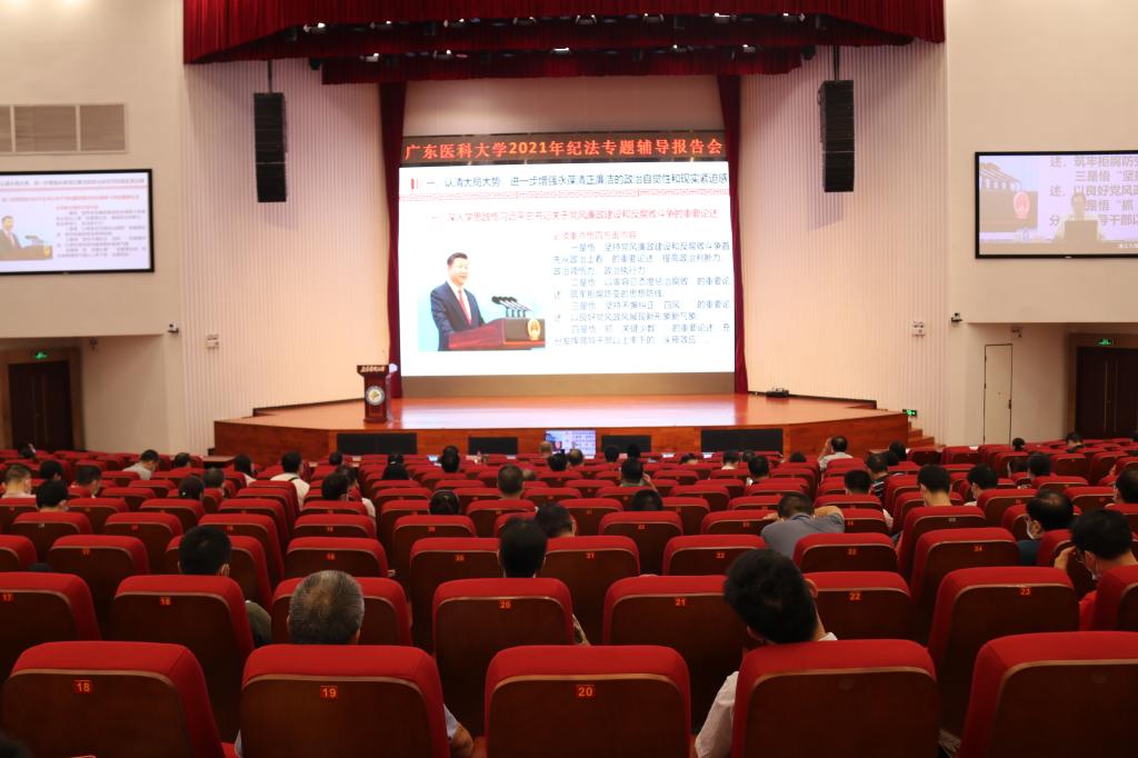 根据学校2021年纪律教育学习月活动安排,9月16日下午,学校在两校区召开纪法专题辅导报告会。会议由学校党委副书记、纪委书记、广东省监委驻新葡萄8883官网监察专员向献兵主持。