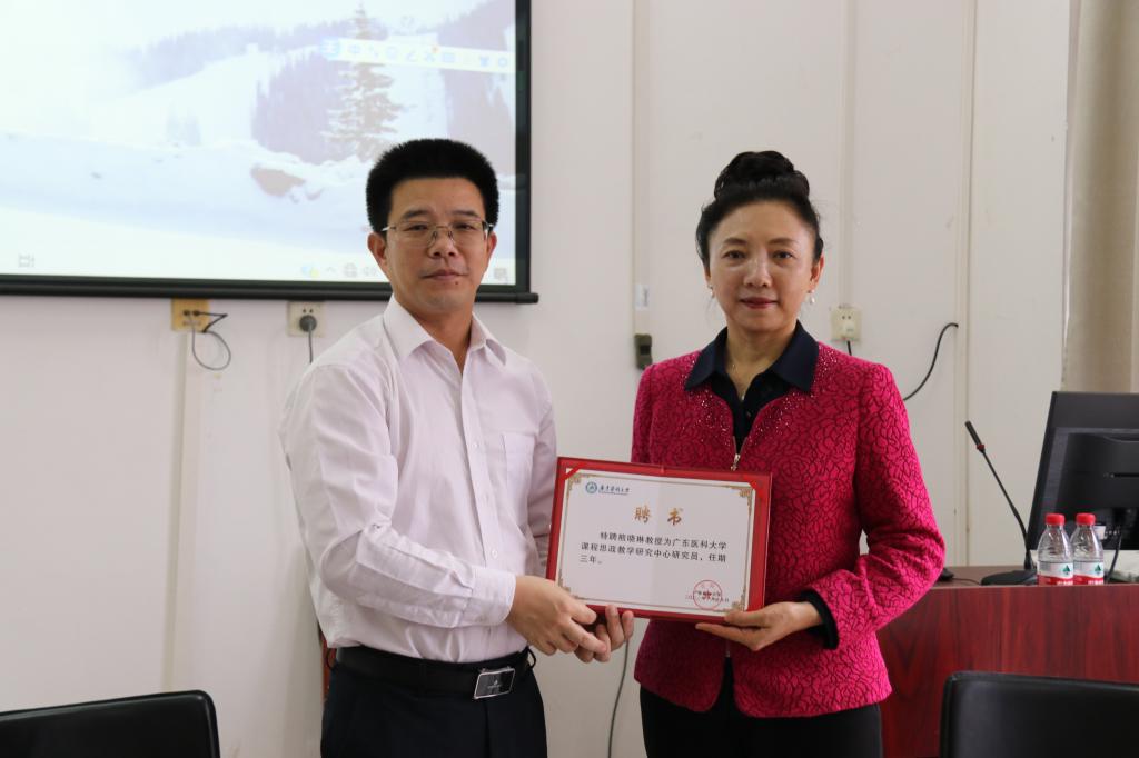 报告会上,学校特聘熊晓琳教授为新葡萄8883官网课程思政教学中心研究员,曾志嵘副校长为熊教授颁发了证书。