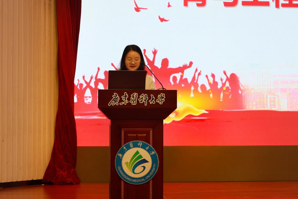 开班仪式现场,学校团委副书记张素琼为学员们解读了本期培训方案,希望全体学员们在为期三周的紧张培训中能够有所收获,有所成长。学员代表陈梓怡在开班仪式上发言并代表全体学员做出表态:遵守培训各项纪律,把握培训班创造的每一次学习机会,努力营造学习氛围,树立广东医青年的良好形象。邓晓眉同学作为授旗代表从陈婷书记手中接过班旗,班旗代表着沉甸甸的希望与责任,更代表着青年马克思主义者的接续和传承。