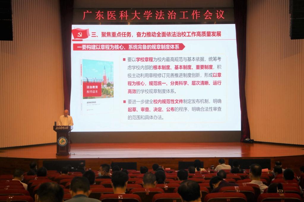 11月4日下午,在全党全国深入学习贯彻习近平总书记“七一”重要讲话精神,全校上下扎实开展党史学习教育、全面落实省委巡视整改的时候,学校召开法治工作会议。会议由学校党委副书记罗辉主持,党委书记校长卢景辉作题为《坚持依法治校、提升治理水平,为建设高水平医科大学提供坚实法治保障》的工作报告。