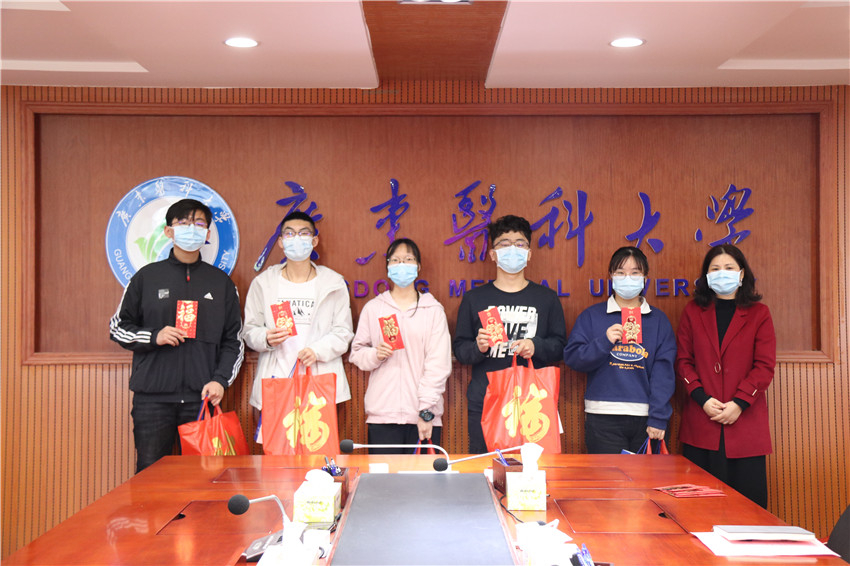 “学校给我们举行了慰问活动,给留校学生送了水果、牛奶、糖果和大红包,校领导和老师叮嘱我们学习生活上有什么困难就说,学校尽量给解决,让大家在学校过个开心年。”医学技术学院夏娇娇同学表示,收到2022年第一个大红包,让她非常感动。她说:“学校也太好了吧,幸福从嘴角流了出来。”