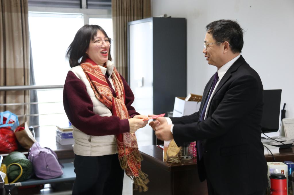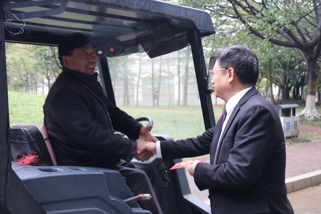 一元复始,万象更新。节日里的广东医校园处处洋溢着欢乐、祥和的新春气息。2月1日,农历大年初一上午,校领导向献兵、刘新光携党委办公室、校长办公室、保卫处、后勤基建管理处等相关部门的同志看望春节期间在岗教职员工。并代表学校对他们的辛勤工作和无私奉献表示感谢,同时致以亲切的问候。