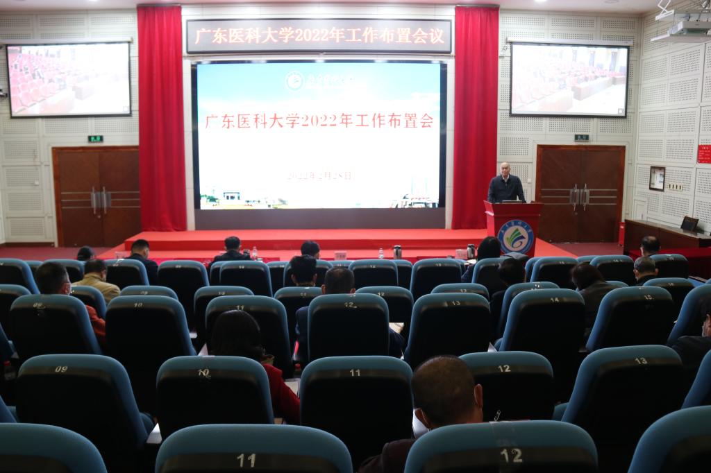 党委副书记、纪委书记,广东省监委驻新葡萄8883官网监察专员向献兵从十个方面对今年的学校工作作了部署:一是坚持和加强党的全面领导,进一步提升党的建设质量。坚持不懈抓好理论武装;迎接党的二十大胜利召开;巩固拓展党史学习教育成果;持续强化基层党组织政治功能;做好党的思想建设工作;建设高素质专业化干部队伍;深入开展“牢记初心担使命,争做育人大先生”主题活动;维护校园安全稳定;坚持不懈把全面从严治党向纵深推进。二是贯彻落实中央深化新时代教师队伍建设改革和教育评价改革,加强教师队伍建设。深化人才工作机制改革;大力实施人才强校战略;加大教师队伍培训力度;完善师德师风建设长效机制。三是健全交叉融合发展机制,强化学科优势和特色。纵深推进“123N”学科建设战略;持续深化学科体制机制改革。四是深化教育教学改革,落实立德树人根本任务。系统推进“三全育人”综合改革建设;进一步深化教育教学改革;大力提升办学品牌和声誉;提升研究生学位与教育水平。五是推进“十四五”规划落地实施,推动学校高质量发展。深入实施“十四五”发展规划。六是两校区专班加强谋划对接落实,充分发挥多方联动效能。深入推动和东莞市、松山湖的合作共建;深入推进和湛江市以及“湛茂阳城市群”的合作共建。七是创新科研管理机制,全面提升科技创新能力。持续提升科研创新活力;加强科研条件和平台建设。八是全面加强大学附属医院建设,提升服务区域经济社会发展能力。全面优化大学附属医院结构,提升大学附属医院水平;全力建设北部湾和粤西区域医疗中心;全面提升医疗服务社会的能力和水平。九是不断增强办学条件和服务水平,营造良好办学环境。建立健全融合高效的校园“大安全”工作机制;营造良好办学环境。十是做好民生实事,增强师生员工的获得感幸福感安全感。
