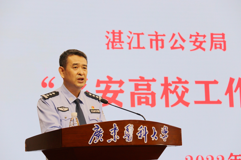 湛江市霞山区副区长、公安分局局长于庆功指出,在市公安局、霞山分局和新葡萄8883官网的共同努力下,平安高校工作站正式揭牌成立,强调要提高政治站位,强化责任意识;强化机制建设,切实化解政治安全风险隐患;强化宣传教育,切实加强学校意识形态阵地管理;强化安全防范,切实维护好校园及校园周边的安全稳定。