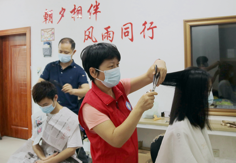 当天下午三点多,学校机关党委志愿者谭丽波老师免费“开剪”。下午五点多,短短两个小时,8位学生“顾客”满意而归。原来谭丽波老师家有两个双胞胎儿子和先生,打理头发“湿湿碎”。“谭老师的技术比外面的理发店更好,非常感谢学校和老师!”2017级临床医学专业罗学飞同学点赞。