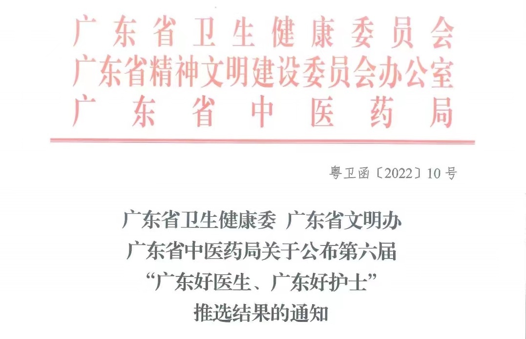近日,广东省卫生健康委、省文明办、省中医药局、南方日报社、省卫生健康系统思想政治促进会、人之初杂志社等单位联合开展第六届寻找“广东好医生、广东好护士”活动,经各地各部门推荐、活动组委会评审,评出第六届“广东好医生、广东好护士”获奖者20名。其中新葡萄8883官网附属第二医院应急指挥中心副主任刘旺获得第六届“广东好医生”称号。