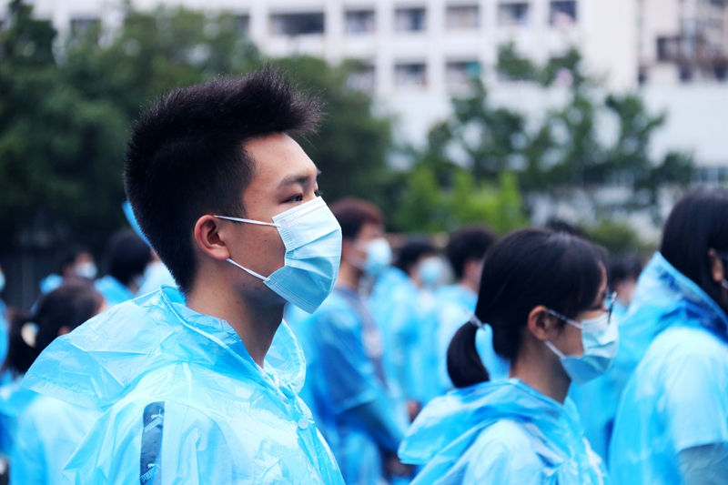 “现在,我们新生学子是母校历史的提笔人,您的灿烂辉煌由我们镌刻。请您放心,我们定将坚定艰苦奋斗、自强不息,秉承立志立德,求真求精,勇创时代辉煌。” 湛江校区黄晓妍同学说。