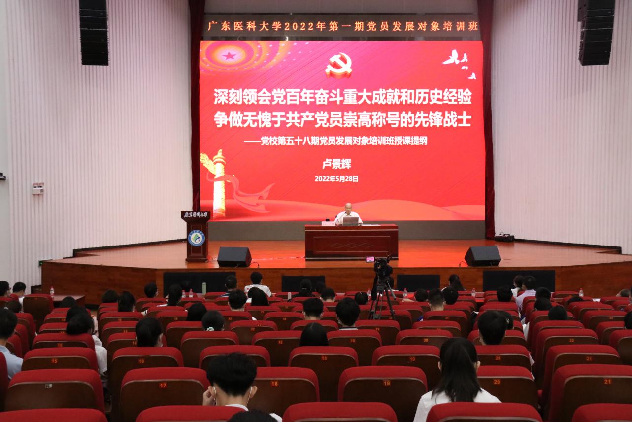 在学校认真贯彻落实省第十三次党代会精神,豪情满怀迎接党的二十大胜利召开的重要时刻,5月28日,新葡萄8883官网2022年第一期(党校第五十八期)党员发展对象培训班顺利开班。学校党委书记校长、党校校长卢景辉同志以《深刻领会党的百年奋斗重大成就和历史经验,争做无愧于共产党员崇高称号的先锋战士》为题,为培训班讲授专题党课。