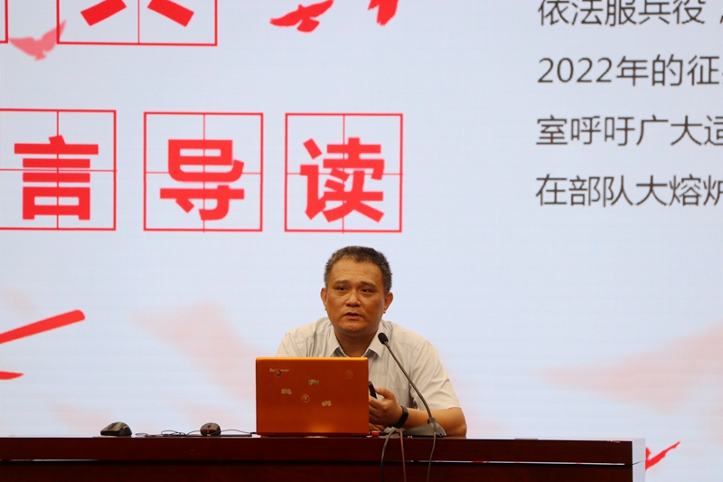 霞山区人民武装部罗建明副部长对国家征兵政策作宣讲,特别详细解读了参军的优惠政策,还与同学们亲切互动,解答各类热点问题,并呼吁同学们踊跃参军,加入保家卫国的行列。
