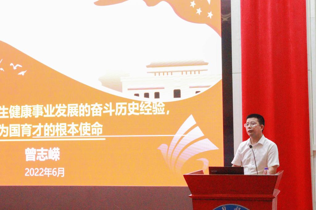 这场一个半小时的专题思政课,干货满满、正能量充足。曾志嵘副校长以《学习党领导卫生事业发展的奋斗历史经验,践行为党育人为国育才的根本使命》的主题,详细介绍了中国共产党在四个历史发展时期领导卫生健康事业发展的历程和十条宝贵的经验,阐述了广东医赓续红色基因、为党育人的历史底蕴,介绍了“五术”医学人才的培养计划,诠释了学校“为党育人、为国育才”的使命担当、落实立德树人的成效和全员育人的责任,培养担当时代复兴新人的举措和实践。