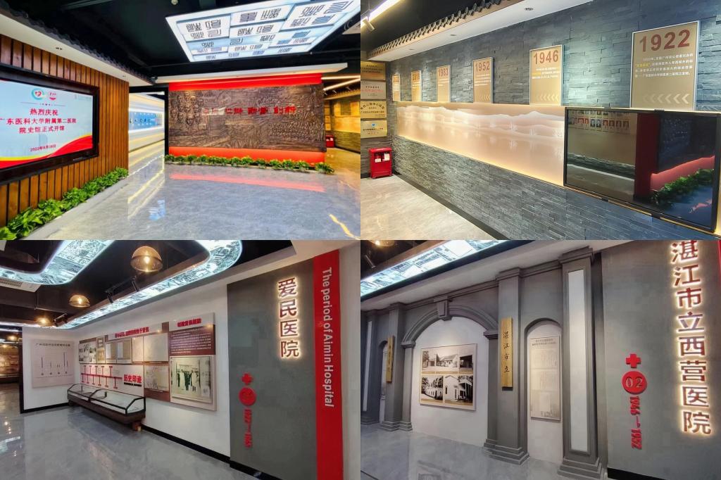 广东医附二院院史馆占地约300平方米,自2020年8月开始筹建,历经2年,于2022年8月18日正式开放。院史馆共设有五个篇章,分别为序篇、时代篇、党建篇、应急篇、未来篇。以“以史为鉴、承前启后;尊重历史,与时俱进”的定位,坚持特色性、文化性、艺术性、多元性、综合性、延伸性,展馆风格简洁有力,丰满大气,展现了广东医附二院自1922-2022年100年的发展历程。