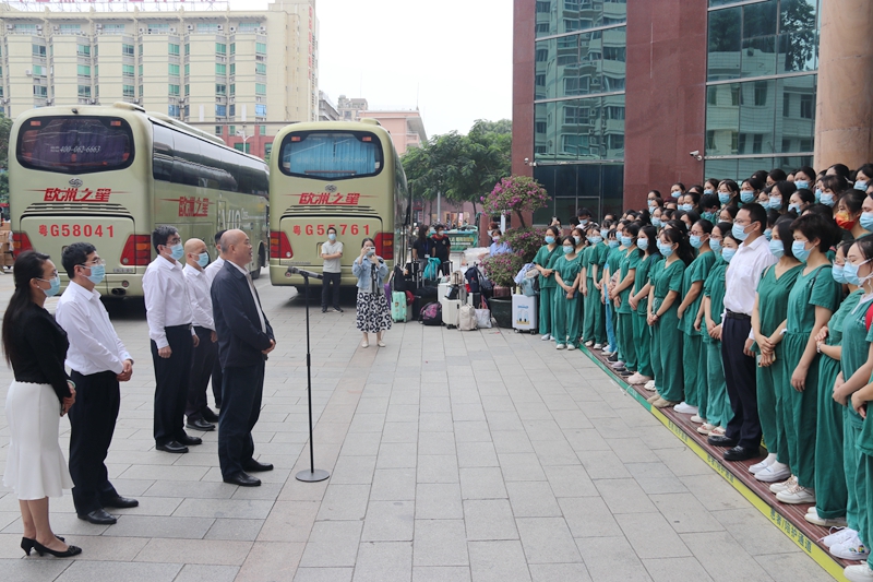 为全力支持广州市打好本轮疫情攻坚战,11月25日下午,由新葡萄8883官网附属医院210名医务人员组成的支援广州市新冠肺炎医疗救治队伍出征,奔赴广州抗疫一线,以实际行动展现高水平医院的责任与担当。