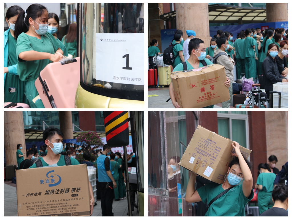 学校和附属医院高度重视此次医疗救治支援工作,第一时间开展组织动员,火速集结了含医疗、护理、感控、行政后勤等专业人员组成医疗队伍,调度筹备充足的医疗物资。队伍中有不少医护人员都有丰富的支援经验,其中孙小聪、余赛男、吴欣等是参与抗击湖北新冠肺炎疫情的抗疫“老将”,魏燕璇、徐美俊等曾参与抗击吴川、廉江新冠肺炎疫情工作。