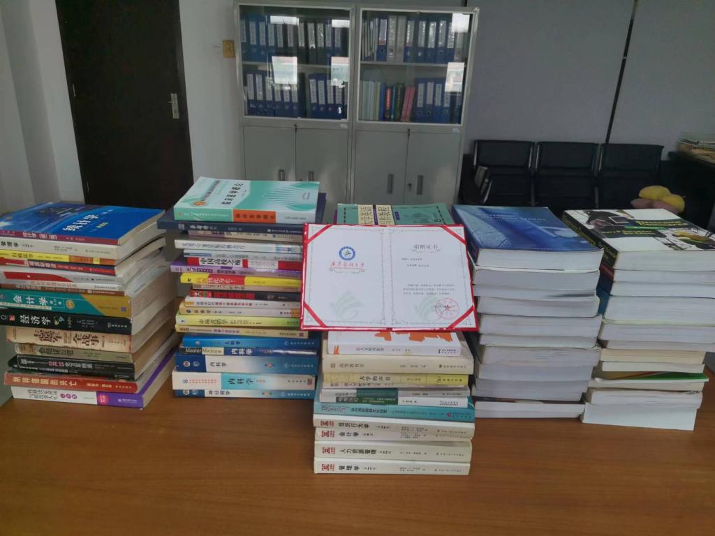 金秋送爽,书香致远,从学校印刷厂退休的苏海华老师将家里的一批藏书捐赠给学校图书馆。苏老师淡泊名利,但对书情有独钟,我们惊讶地发现,苏老师所捐的每一本书都有他的亲笔签名、标注购书的时间与地点,并盖有自己的藏书专用章,体现了苏老师非常重视书籍的收藏及严谨的治学态度。苏老师非常勤奋好学,咬定目标不放松。他参加工作的时候是初中学历,在新葡萄8883官网这个充满书香的校园里工作、生活,激励着他以惊人的毅力自学修完法学专业课程,通过参加国家自学考试获得法学专科文凭,再通过自学学习律师资格考试科目课程,退休前考取了律师资格证,退休后就活跃在粤西的律师界,而且在做律师的同时继续通过参加自学考试获得法学本科文凭。苏老师孜孜不倦、永不停步的学习精神值得我们学习。