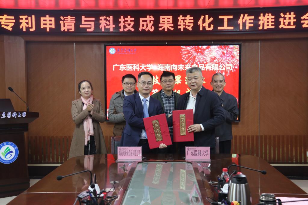 学校党委罗辉副书记代表学校,对张海涛团队与海南向未来食品有限公司的合作表示热烈地祝贺。罗副书记表示,此次专利转让协议的签订,开创了新葡萄科技成果转化的新起点,标志着校企合作迈上了一个新的台阶。希望今后双方发挥各自资源优势,积极搭建平台,扩大发展空间,拓展合作领域,构筑校企合作新模式。