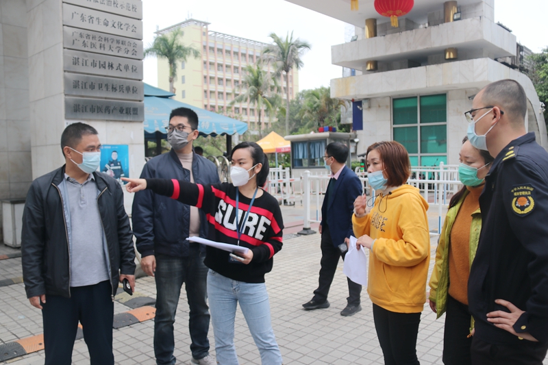 2月7日下午,湛江市霞山区人大常委会委员、城乡建设环境与资源保护工委主任、创文办副主任陈东,新园街道书记李纪发与区创文办督导组一行到湛江校区督导创文迎检工作。