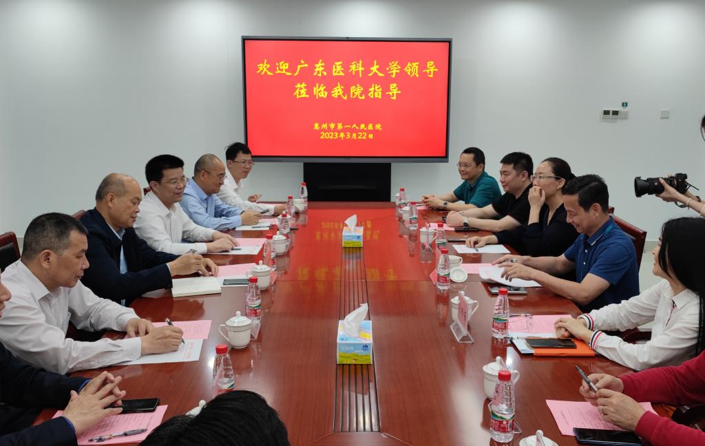为进一步深化校地合作,2023年3月22日下午,新葡萄8883官网党委书记、校长卢景辉率队赴惠州市卫健系统走访交流,学校党委常委、副校长曾志嵘及医院管理处、东莞创新研究院、研究生院、公共卫生学院、附属东莞第一医院等相关单位的负责人陪同参加。