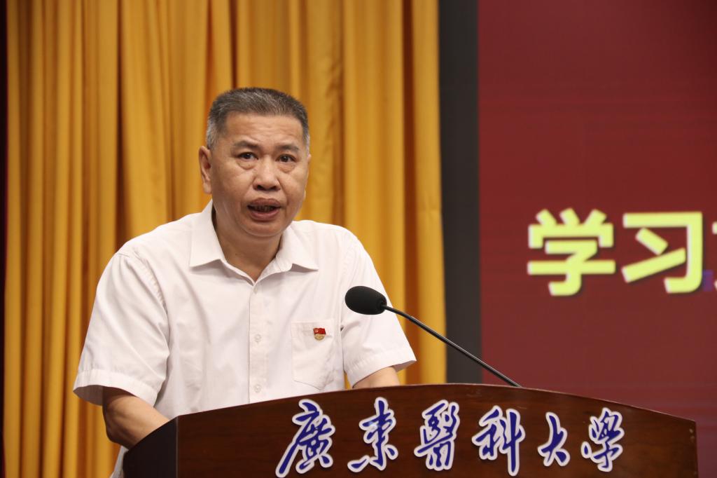 在开班仪式后,学校党委常委、宣传部、教师工作部部长赖焱烽,马克思主义学院院长黄祖辉,医学技术学院党委书记刘卫红三位同志围绕学习贯彻习近平在学习贯彻习近平新时代中国特色社会主义思想主题教育工作会议上的重要讲话精神,习近平总书记视察广东重要讲话、重要指示精神,谈了学习体会,并结合工作实际,谈了推进学校高质量发展的思路举措。