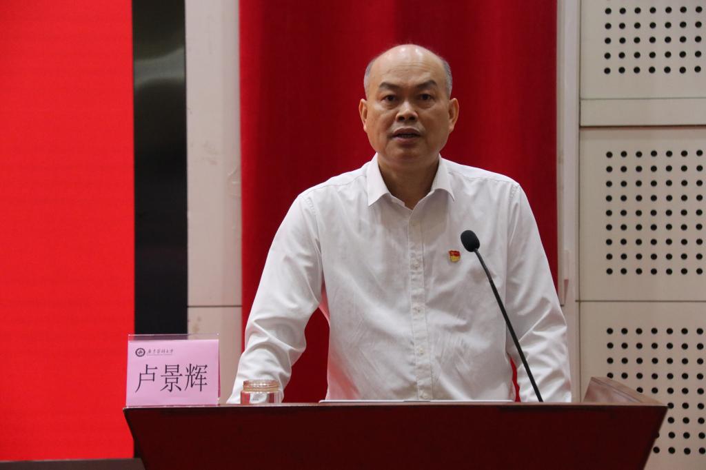 根据学校学习贯彻习近平新时代中国特色社会主义思想主题教育的安排,4月28日,学校开展学校党委书记讲专题党课活动。学校党委书记校长卢景辉作题为《深入学习贯彻习近平总书记视察广东重要讲话重要指示精神 进一步增强加快建设特色鲜明高水平大学的责任感使命感》的专题报告。