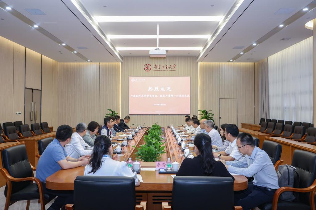 5月12日,学校党委书记、校长卢景辉、党委副书记罗辉、副校长刘新光、党委常委、党委组织部部长谭平、党委常委、宣传部部长赖焱烽及有关职能部门人员一行11人,到广东工业大学围绕党建工作、干部培养管理、高层次人才引育等方面进行调研交流。广东工业大学党委书记胡钦太、党委副书记朱蔚蔚及党委办公室、党委组织部、党委宣传部、人事处等职能部门负责人进行座谈交流。