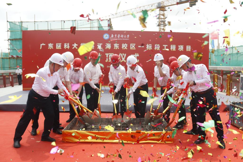 当天上午,湛江市副市长吴国雄,学校党委书记、校长卢景辉,党委副书记罗辉,副校长丁元林;湛江市有关职能部门,坡头区委、区政府及官渡镇委、镇政府,参建单位代表及学校有关职能部门负责人出席活动,共同见证历时性时刻。