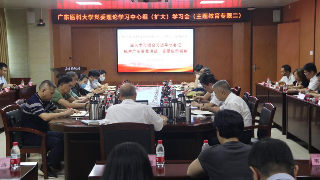 5月22日,学校党委召开党委理论学习中心组(扩大)学习会,深入开展学习贯彻习近平新时代中国特色社会主义思想主题教育,进一步学习贯彻习近平总书记视察广东重要讲话、重要指示精神。会议由学校党委书记、校长卢景辉主持。