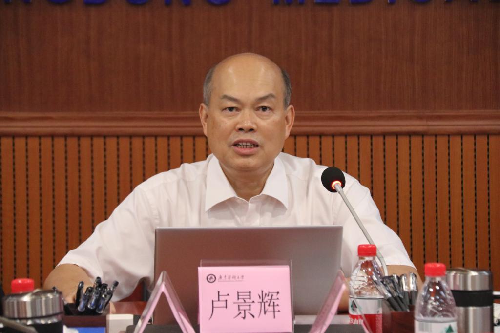 卢景辉强调,学习贯彻习近平新时代中国特色社会主义思想主题教育是习近平总书记亲自谋划、亲自部署、亲自推动的重大工作,开展主题教育是今年党的建设的重大任务。主题教育不划阶段、不分环节,要把理论学习、调查研究,推动发展、检视整改贯通起来,有机融合、一起推进。这就要求深刻理解、牢牢把握主题教育的总要求,学思想就要学出新的感悟、转化成新的成果;强党性就要心系师生,增强为民情怀,践行群众路线,扎实践行好以师生发展为中心的办学理念,服务好广大党员、师生与医护员工;重实践就要注重解决问题;建新功就要看到变化,从一开始就要把学和做结合起来,把查和改贯通起来,把破和立统一起来。