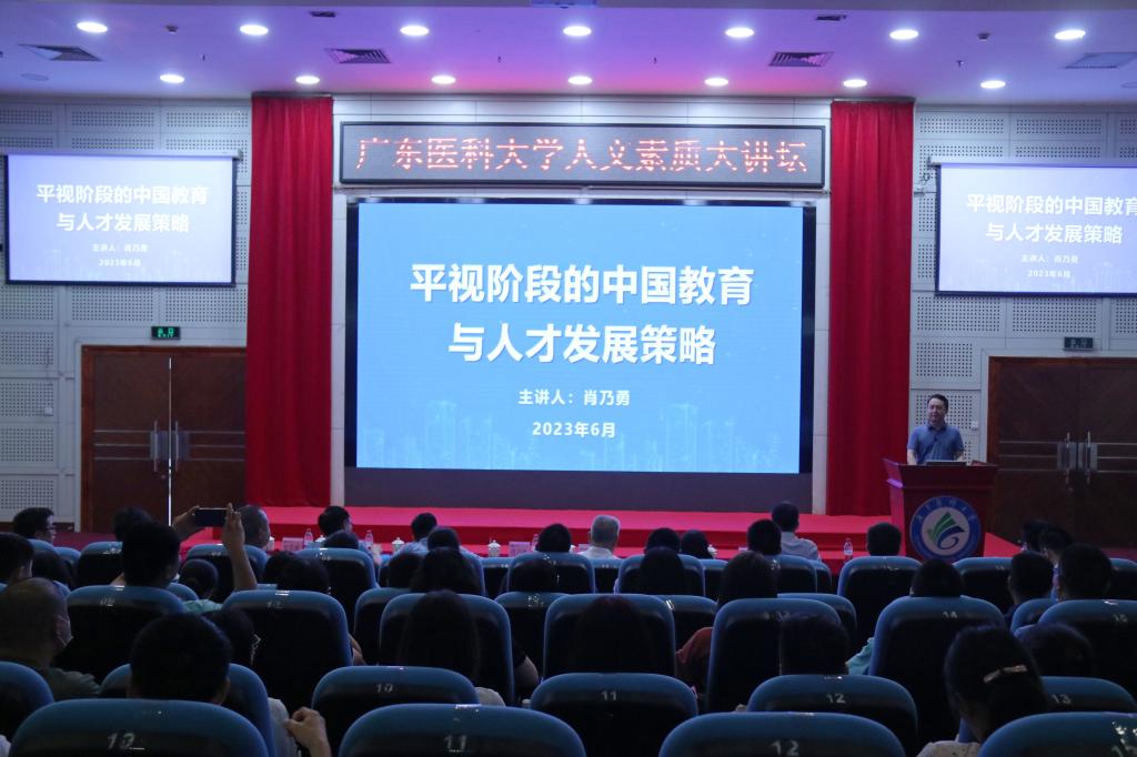 6月19日下午,为扎实推进学习贯彻习近平新时代中国特色社会主义思想主题教育,学习贯彻习近平总书记在中共中央政治局第五次集体学习会议上的重要讲话精神,学校举办新葡萄8883官网人文素质大讲坛。东莞市社科联党组成员、副主席肖乃勇应邀作以《学习贯彻习近平总书记在中共中央政治局第五次集体学习会议上的重要讲话精神——平视阶段的中国教育与人才发展策略》为题的报告。学校党委副书记罗辉主持并讲话。