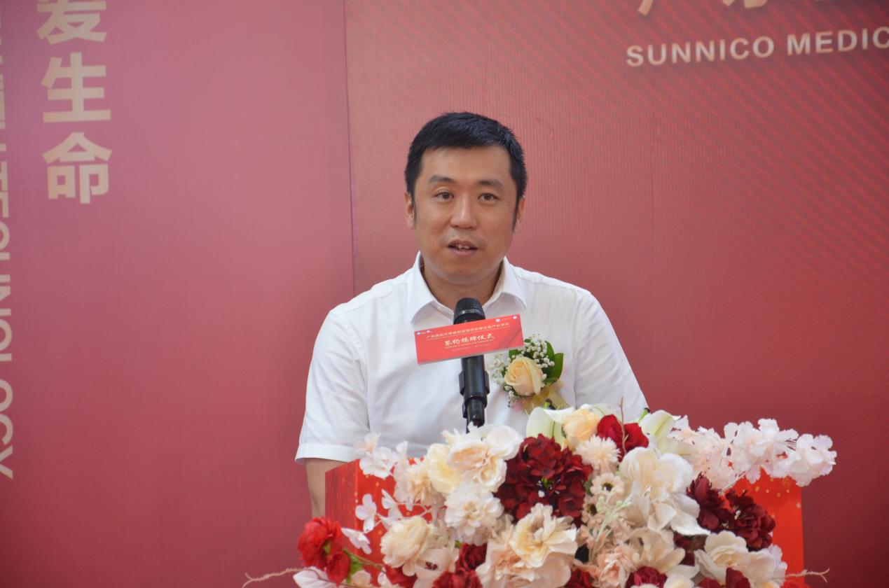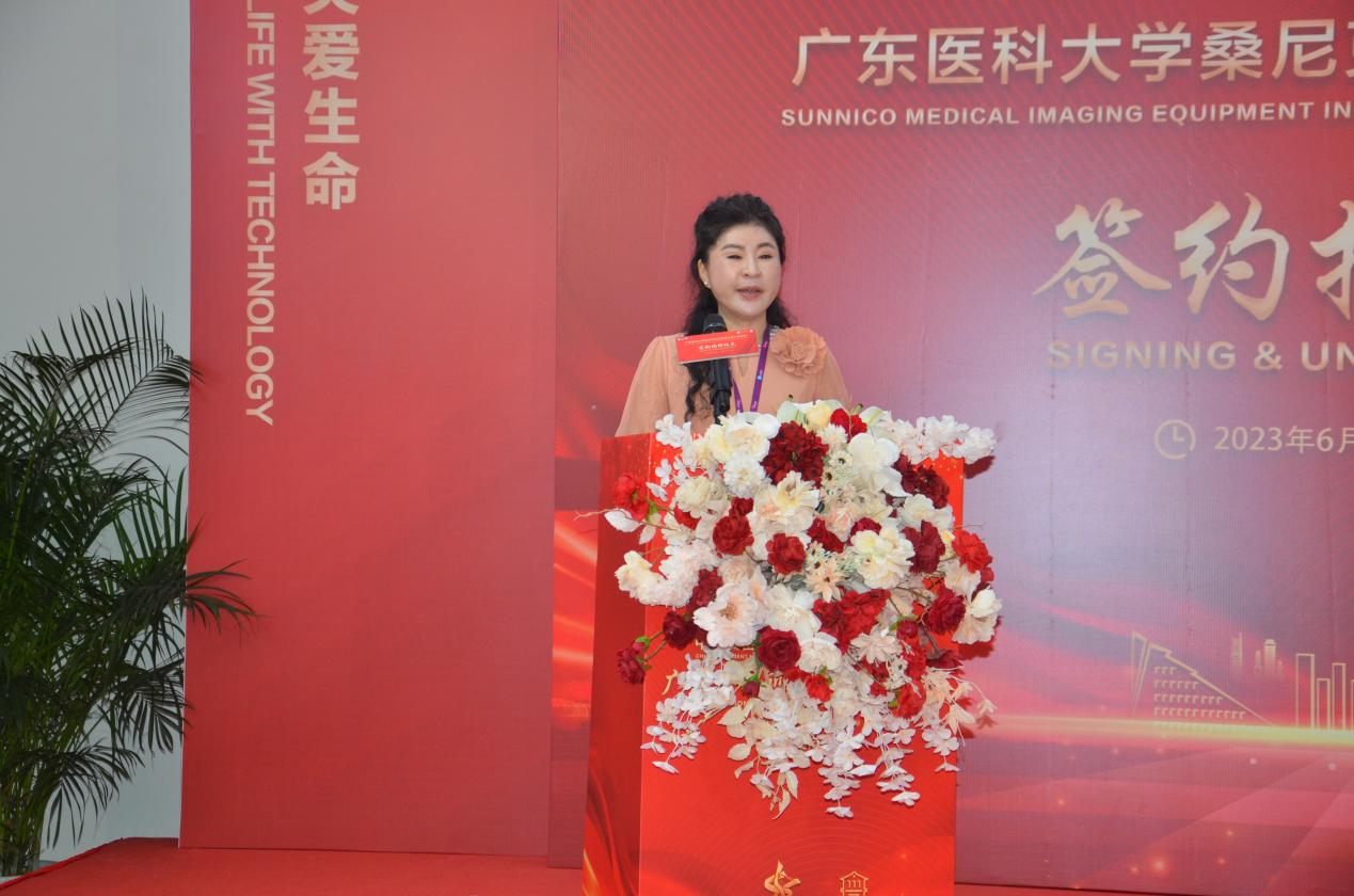 在揭牌仪式上,广东上药桑尼克医疗科技有限公司总经理李岩女士对校方一行表示热烈欢迎,并回顾了桑尼克公司与生物医学工程学院8年多的合作历史,充分肯定了双方在培养医学影像设备技术人才和科研合作方面的成果,阐述了公司在软硬件平台搭建、医疗设备全生命周期智慧管理、AI技术应用及工程师队伍的建设等方面的投入及成效,表示桑尼克将大力投入新葡萄8883官网桑尼克医学影像设备产业学院建设,矢志为推动行业进步培养更多优秀人才。