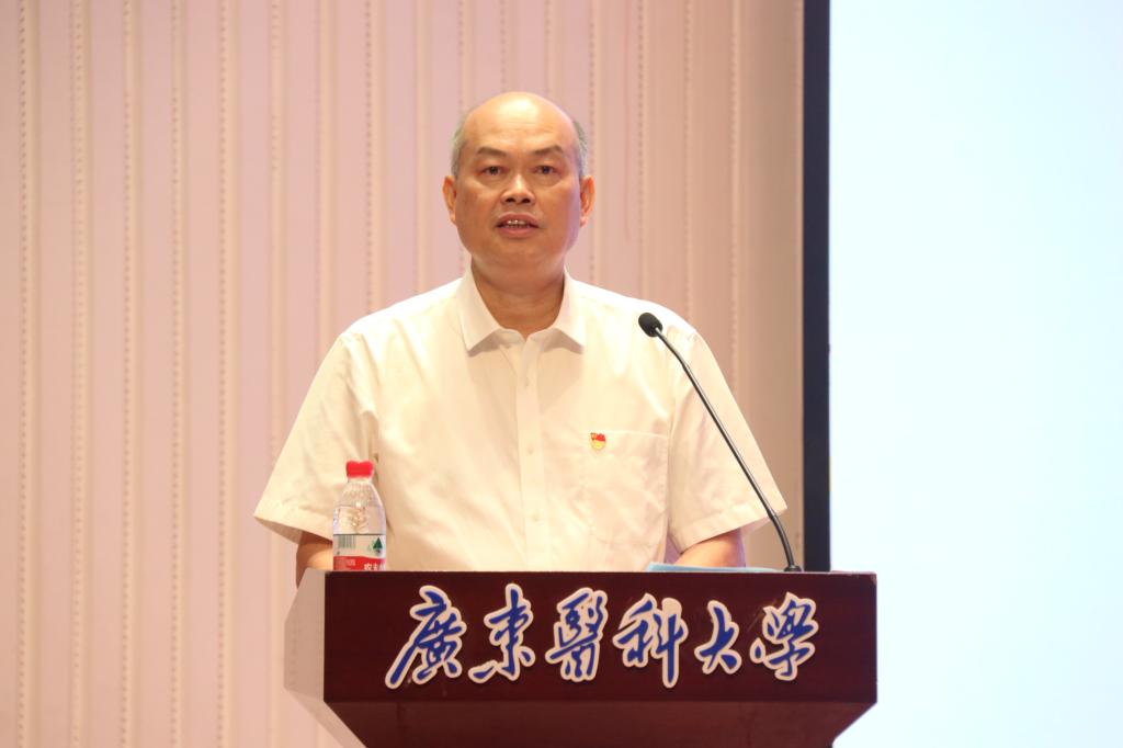 卢景辉在分析新时代思想政治工作的形势后指出,在建设高水平大学的新征程中,要深刻领会习近平总书记对教育、科技、人才工作的新论断、新定位、新期待,把思想政治工作贯穿教育教学全过程,潜心立德树人,提高育人质量,为中国式现代化建设提供基础性、战略性支撑。要把握主导权,坚持正确办学方向和思想价值引领;要用好主渠道,统筹推进课程思政和思政课程建设;要抓好主群体,切实加强和改进师生思想政治工作;要建好主力军,配齐建强高素质思想政治工作队伍;要拓展主战场,积极运用新媒体创新思政工作载体;唱响主旋律,增强以文化人和以文育人的感召力。他强调,做好学校思想政治工作重在夯实责任、贵在真抓实干。要强化担当作为,种好“责任田”;要加强协调联动,共画“同心圆”;要强化评价考核,用好“指挥棒”,畅通思想政治工作“最后一公里”,确保各项措施和重点工作落到实处,取得实效,让思政之树在干事创业、合力攻坚中枝繁叶茂、结出硕果,为广东在推进中国式现代化建设中走在前列作出广东医新的更大贡献!