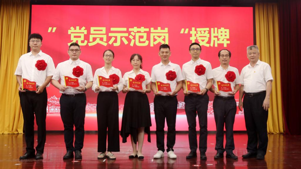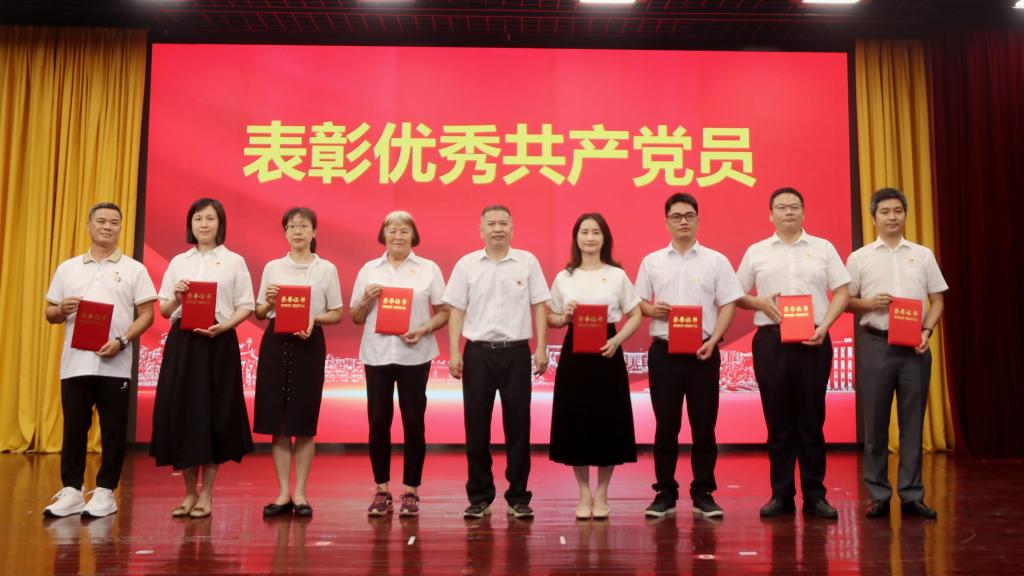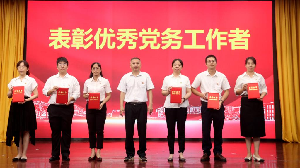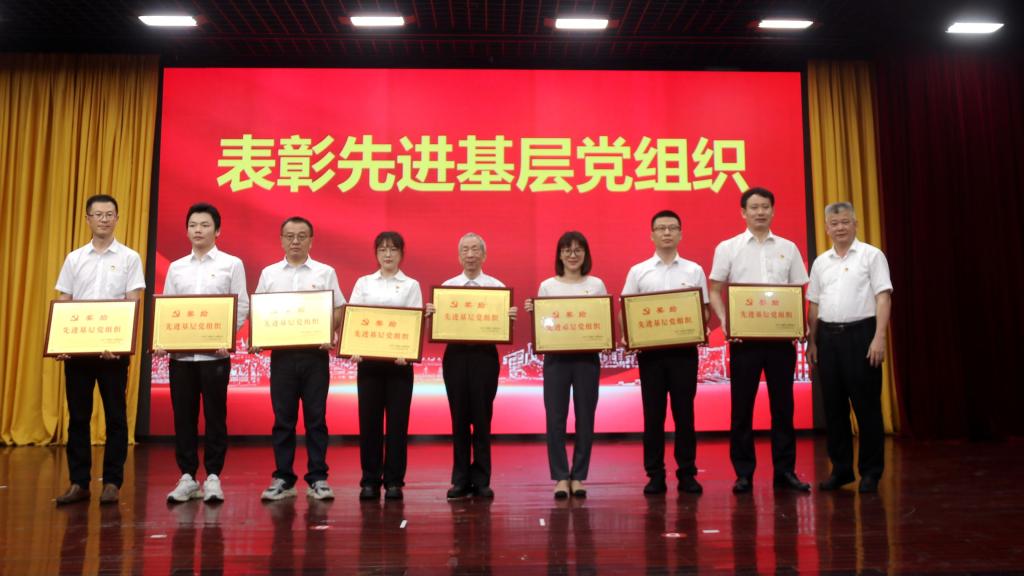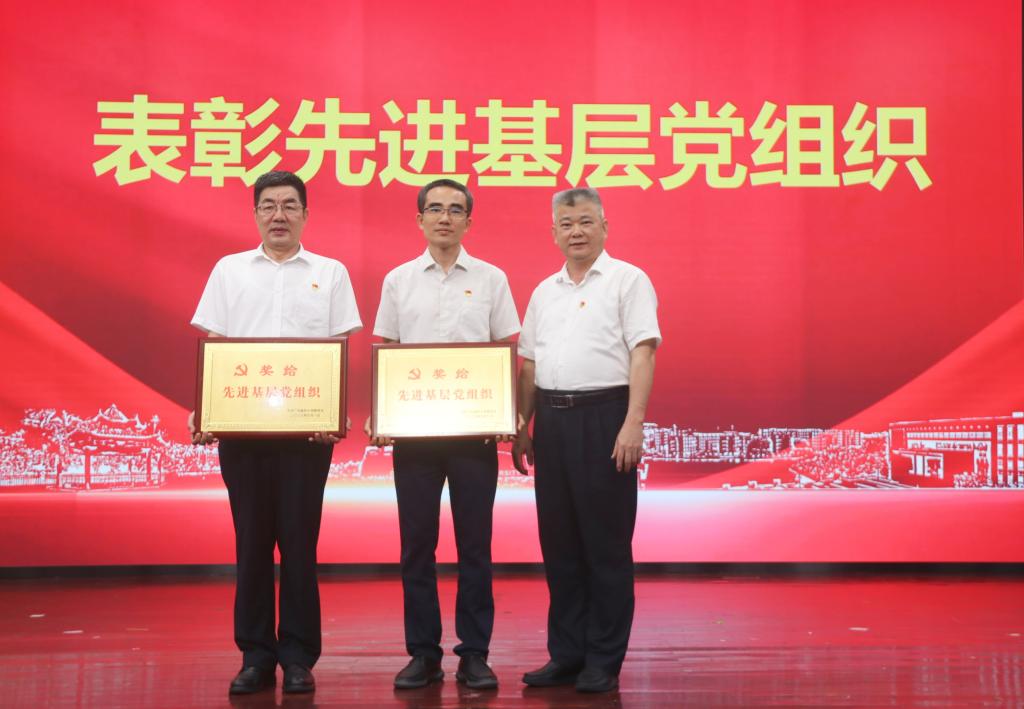 校领导为先进基层党组织、优秀共产党员、优秀党务工作者和党员示范岗授牌和颁发荣誉证书。