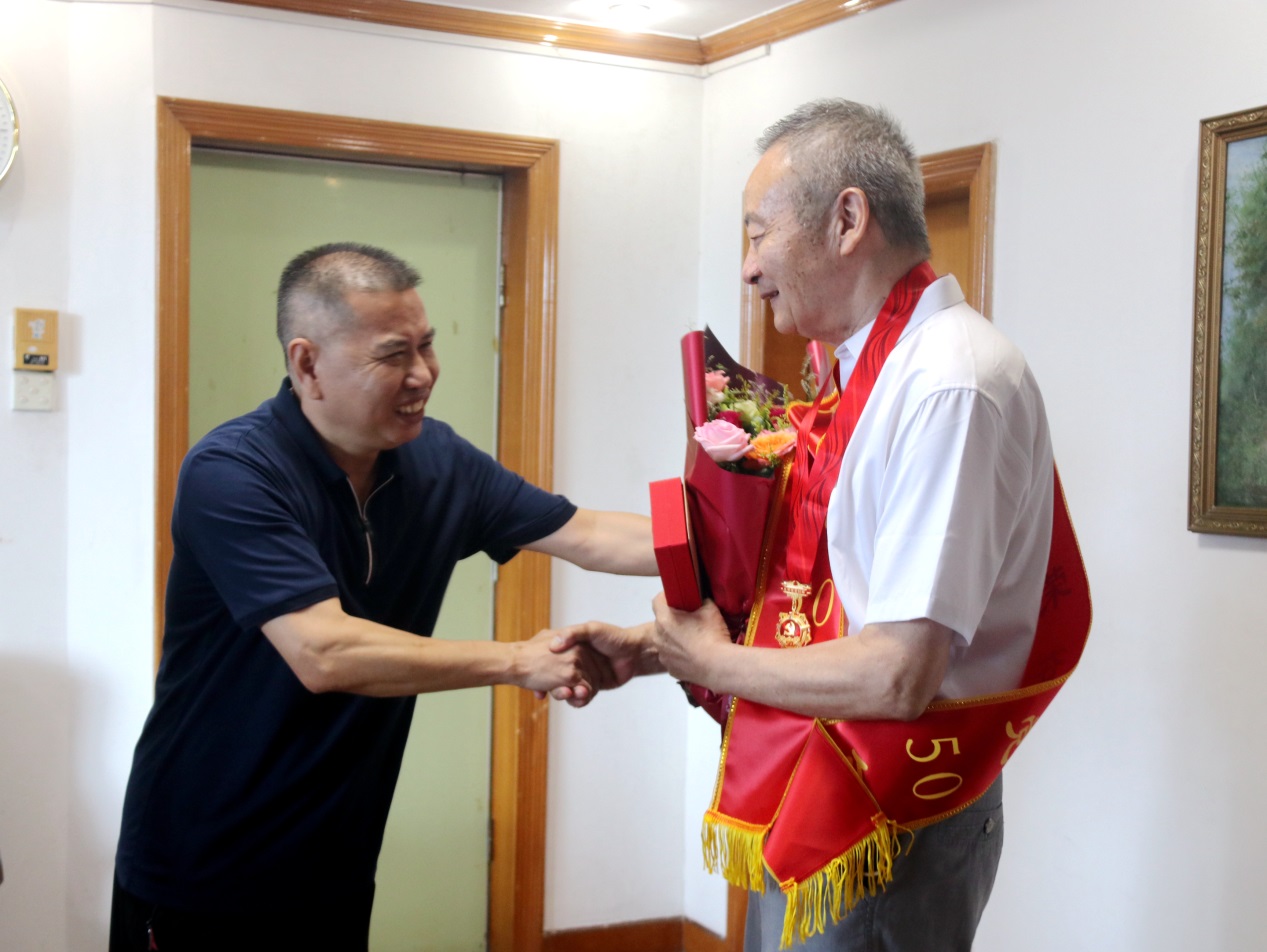 莫道桑榆晚,为霞尚满天。6月29日-30日,校领导卢景辉、向献兵和罗辉分别带队慰问老党员、患病党员、老干部代表,为党龄50年的老党员颁发“光荣在党50年”纪念章,送上鲜花和慰问金,聆听老党员们讲述年轻时艰苦奋斗、自强不息参与投身学校建设等奋斗故事。