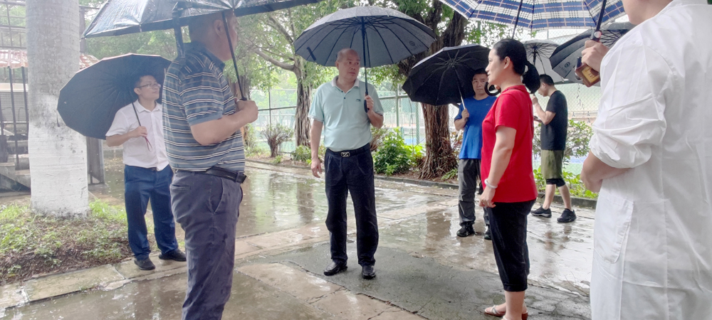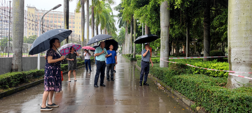 检查过程中,卢景辉带队检查了校园各楼宇、校道、户外公共设施等。重点检查了海洋医药研究院、实验动物中心、配电中心、食堂等场所。卢景辉详细检查了路面、围墙、建筑等可能存在隐患的位点,再三核验防护设施的牢固性,确保防护设施安全可靠,无漏洞盲区。