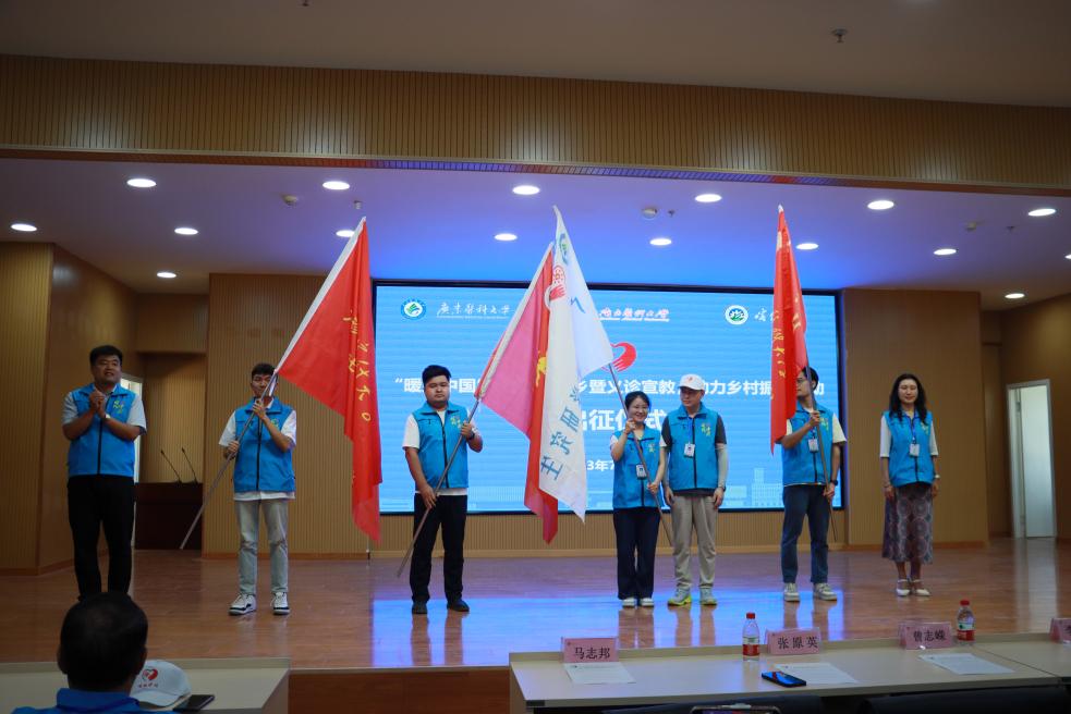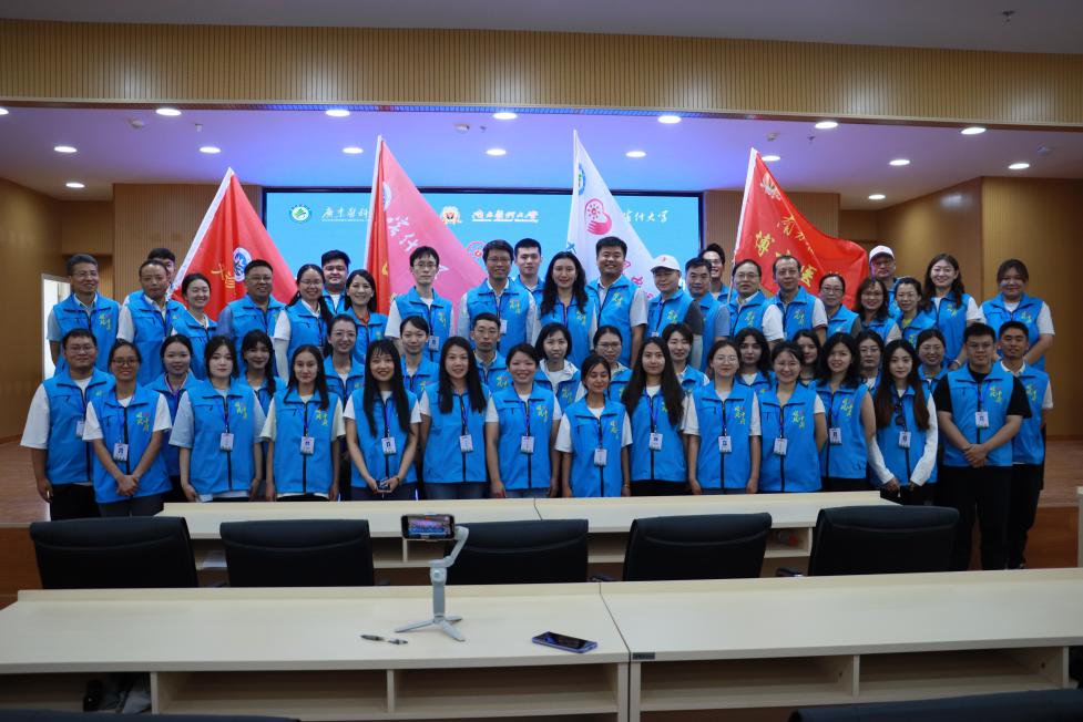 新葡萄8883官网、南方医科大学和喀什大学志愿服务队带队领导向志愿服务队授旗,并与参会人员合影留念。(文/彭浩晟、陈建和 图/刘鸿、杨莹蓥 初审/唐焕文 复核/周圆 终审/冯锦山)