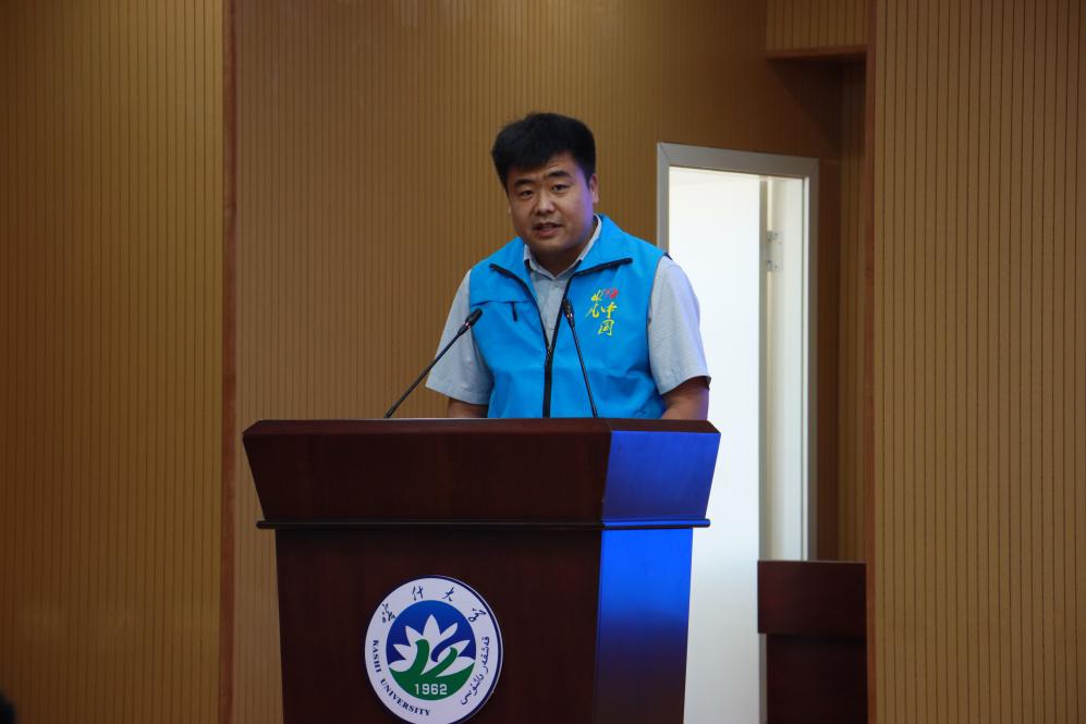 张原英副书记在讲话中表示,新葡萄8883官网、南方医科大学和喀什大学是“一家人”,希望“暖风中国”全体学生队员秉承为社会做贡献,为群众做实事的初心使命,用责任心、耐心、细心、爱心和信心做好活动,为喀什人民服务。李凌队长在讲话中详细阐述了本次活动的定位和意义,表示此次活动不仅助力乡村振兴,更促进了三校的合作交流,并代表南方医科大学帮扶团队向全体队员的支持和精心安排表达感谢,预祝活动取得圆满成功。