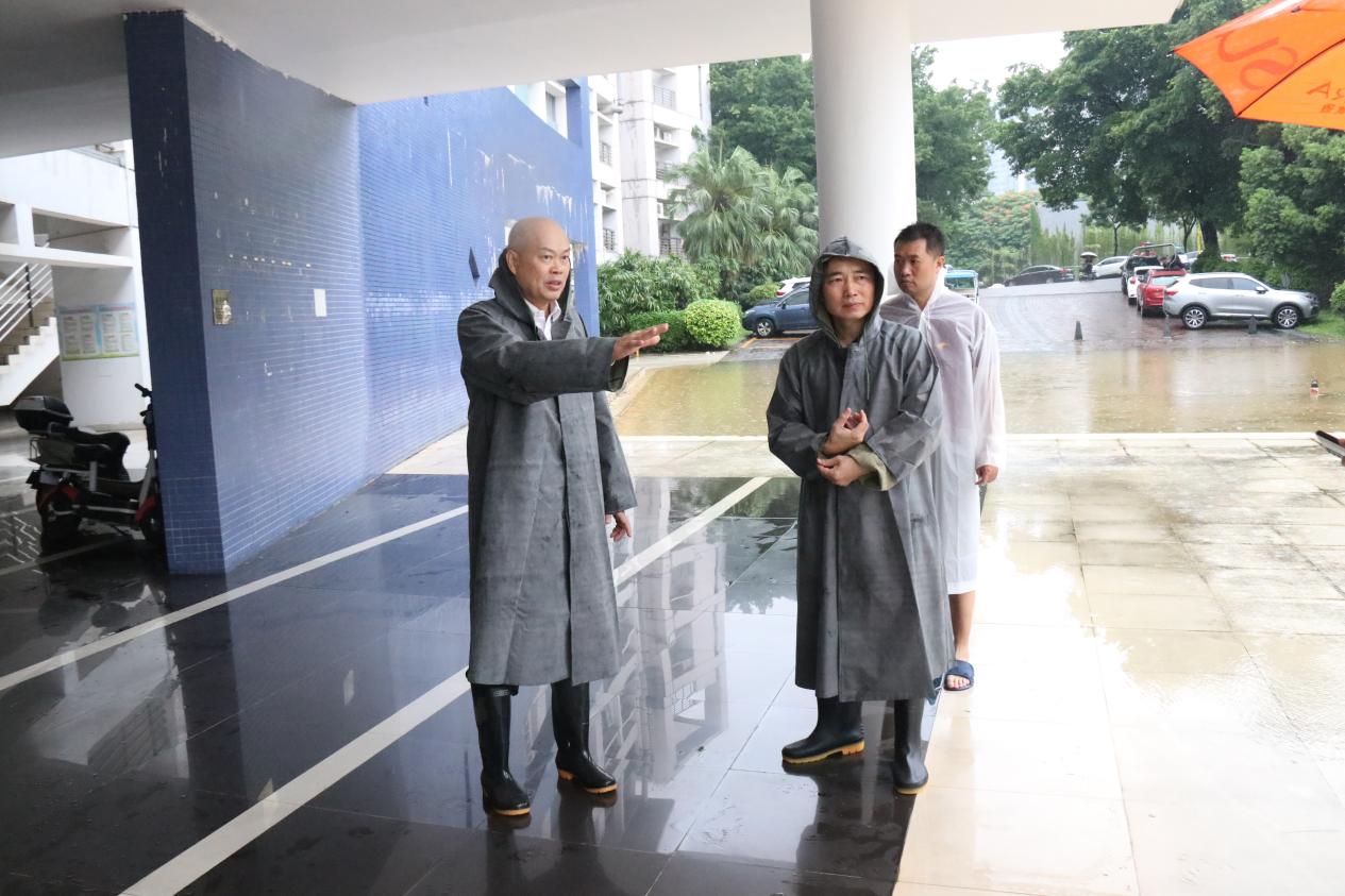 由于连续降雨,导致学校东莞校区多个低洼处积水严重,为了及时应对洪涝情况,9月8日上午,学校党委书记校长卢景辉亲自带队进行了现场勘察,并指导接下来的排涝工作,以确保校园的正常运行和师生的安全。